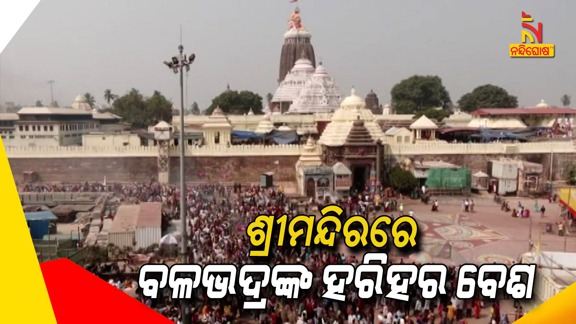 ପୁରୀ : ଆଜି ଶ୍ରୀମନ୍ଦିରରେ ବଡ଼ଠାକୁରଙ୍କ ହରିହର ବେଶ ଅନୁଷ୍ଠିତ ହୋଇଛି । ଅବକାଶ ନୀତି ପରେ ବଡ଼ଠାକୁରଙ୍କୁ ହରିହର ବେଶରେ ସଜିତ କରାଯାଇଛି | ଏହି ବେଶରେ ବଡ଼ଠାକୁର ଅର୍ଦ୍ଧେକ ଧଳା ଓ ଅର୍ଦ୍ଧେକ କଳା ଦିଶିବା ସହ ୩୨ ପ୍ରକାର ସୁବର୍ଣ୍ଣ ଅଳଙ୍କାର ପରିଧାନ କରିଛନ୍ତି। କାର୍ତ୍ତିକ ମାସର ଦୀପାବଳି ଅମାବାସ୍ୟାଠାରୁ ଶୁକ୍ଳ ଦଶମୀ ମଧ୍ୟରେ ସୋମବାର ପଡ଼ିଲେ ରତ୍ନସିଂହାସନରେ ଅଧିଷ୍ଠିତ ବଡ଼ଠାକୁରଙ୍କ ବାଡ଼ରେ ହରିହର ବେଶ ହେବାର ବିଧି ରହିଛି। ଚଳିତ ବର୍ଷ ଦୀପାବଳି ଅମାବାସ୍ୟା ପରେ ଆଜି ସୋମବାର ହୋଇଥିବାରୁ ଶ୍ରୀମନ୍ଦିରରେ ମହାପ୍ରଭୁଙ୍କ ଅବକାଶ ନୀତି ପରେ ବଡ଼ଠାକୁରଙ୍କୁ ହରିହର ବେଶରେ ସଜିତ କରାଯାଇଛି ।