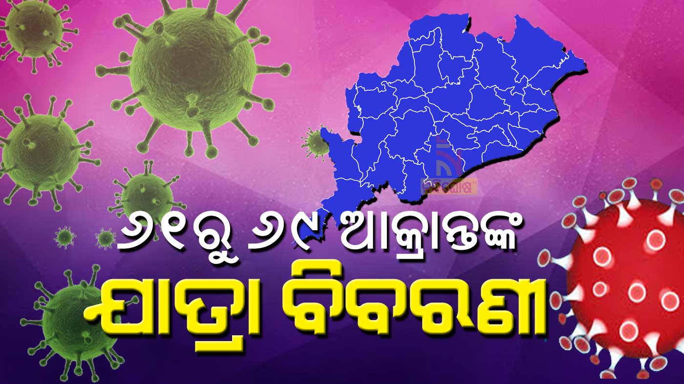 ଭୁବନେଶ୍ୱର: ରାଜ୍ୟରେ ସଂକ୍ରମିତଙ୍କ ସଂଖ୍ୟା ୭୯କୁ ବୃଦ୍ଧି ପାଇଛି । ସ୍ୱାସ୍ଥ୍ୟ ବିଭାଗ ୬୧, ୬୨, ୬୩, ୬୪, ୬୫, ୬୬, ୬୭, ୬୮ ଓ ୬୯ ନମ୍ବର ନମ୍ବର କରୋନା ଆକ୍ରାନ୍ତଙ୍କ ଟ୍ରାଭେଲ୍ ହିଷ୍ଟ୍ରୀ ଜାରି କରିଛି । ବାଲେଶ୍ୱର ନେଳିଆବାଗରେ ଚିହ୍ନଟ ୬୧ ନମ୍ବର ଆକ୍ରାନ୍ତ ମାର୍ଚ୍ଚ ୧୩ ତାରିଖରେ ଝାଡ଼ଖଣ୍ଡ ଯାଇ ଫେରିଥିଲେ । ପରେ ଜିଲ୍ଲା ମୁଖ୍ୟ ଚିକିତ୍ସାଳୟ, ଭୁବନେଶ୍ୱର ଆପୋଲ ହସ୍ପିଟାଲ, କ୍ୟାପିଟାଲ ହସ୍ପିଟାଲ, କିମ୍ସ, ଏମ୍ସକୁ ଯାଇଥିଲେ । ଏପ୍ରିଲ୍ ୧୮ରେ ତାଙ୍କ ରକ୍ତ ନମୁନା ପଜିଟିଭ୍ ଆସିଥିଲା । ଏହାପରେ ତାଙ୍କୁ କିମ୍ସ କୋଭିଡ୍ ହସ୍ପିଟାଲକୁ ସ୍ଥାନାନ୍ତର କରାଯାଇଛି ।