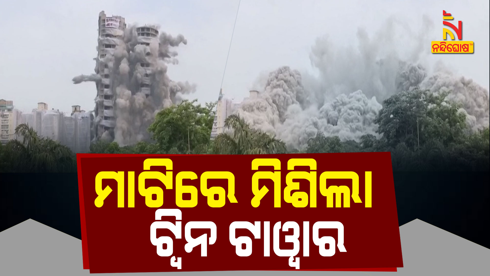 ନୋଏଡା: ୯ ବର୍ଷର ବିବାଦ ୧୨ ସେକଣ୍ଡରେ ଧ୍ବଂସ । ଧରାଶାୟୀ ହେଲା ନୋଏଡା ଟୁଇନ ଟାଓ୍ବାର । କଡ଼ା ନିରାପତ୍ତାରେ ଅପରାହ୍ଣ ସାଢେ ୨ଟାରେ ହୋଇଛି ବିସ୍ଫୋରଣ । ଚାରିଆଡେ ଧୂଆଁମୟ ପରିବେଶ ସୃଷ୍ଟି ହୋଇଛି  ।  ଲାଇଭ ଏକ୍ସପ୍ଲୋଜନର ଦୃଶ୍ୟ ଦେଖିବାକୁ ସାରା ଦେଶ କରିଥିଲା  ପ୍ରତୀକ୍ଷା ।