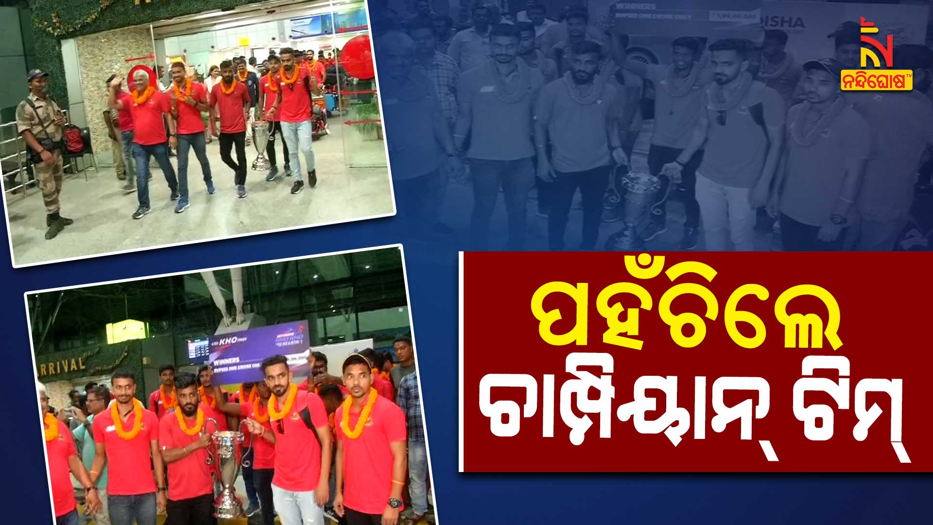 ଭୁବନେଶ୍ବର: ଚାମ୍ପିଅନ୍ ଟ୍ରଫି ନେଇ ଫେରିଲା ଟିମ ଓଡ଼ିଶା ଜଗରନଟ୍ସ । ଭୁବନେଶ୍ବର ବିମାନବନ୍ଦରରେ ଖେଳାଳିଙ୍କୁ କରାଗଲା ଭବ୍ୟ ସ୍ବାଗତ । ପାରମ୍ପରିକ ନାଚଗୀତରେ ଗ୍ରାଣ୍ଡ ଓ୍ବେଲକମ୍ କଲା କ୍ରୀଡ଼ା ବିଭାଗ । କ୍ରୀଡ଼ା ବିଭାଗର ବରିଷ୍ଠ ଅଧିକାରୀ ଉପସ୍ଥିତ ରହି ଟିମକୁ ସ୍ବାଗତ କରିଛନ୍ତି । ଅଲଟିମେଟ୍ ଖୋ ଖୋର ପ୍ରଥମ ସଂସ୍କରଣରେ ଚାମ୍ପିଅନ ହୋଇଛି ଓଡ଼ିଶା ।