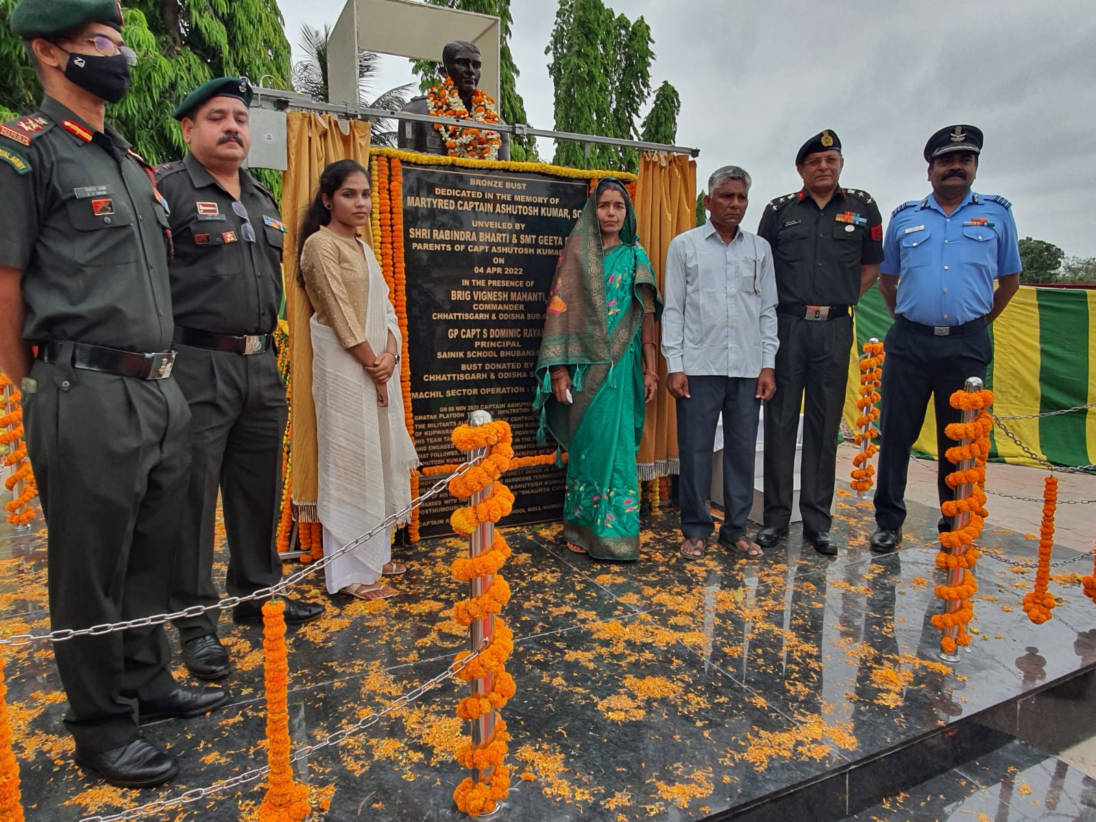 ଭୁବନେଶ୍ୱର: ସୈନିକ ସ୍କୁଲ ପ୍ରାଙ୍ଗଣରେ ମରଣୋତ୍ତର ସୂର୍ଯ୍ୟ ଚକ୍ରରେ ସମ୍ମାନିତ ତଥା ବିଦ୍ୟାଳୟର ପୂର୍ବତନ ଛାତ୍ର ଶହୀଦ କ୍ୟାପଟେନ୍ ଆଶୁତୋଷ କୁମାରଙ୍କ ପ୍ରତିମୂର୍ତ୍ତି ସ୍ଥାପନ ଉତ୍ସବ ଗତକାଲି ସକାଳେ ଅନୁଷ୍ଠିତ ହୋଇଛି । ଏହି କାର୍ଯ୍ୟକ୍ରମରେ ଶହୀଦଙ୍କ ପିତା ରବୀନ୍ଦ୍ର ଭାରତୀ ଓ ମାତା ଗୀତା ଦେବୀ ଯୋଗେଦଇ ଶହୀଦ ଆଶୁତୋଷଙ୍କ ବ୍ରୋଞ୍ଜ ପ୍ରତିମୂର୍ତ୍ତିର ଅନାବରଣ କରିବା ସହ ପୁଷ୍ପମାଲ୍ୟ ଅର୍ପଣ କରିଥିଲେ । ଏହି କାର୍ଯ୍ୟକ୍ରମରେ ଅତିଥି ଭାବେ ଛତିଶଗଡ଼ ଏବଂ ଓଡ଼ିଶା ସବ୍ ଏରିଆ କମାଣ୍ଡର ବ୍ରିଗେଡିୟର ବିଘ୍ନେଶ ମହାନ୍ତି, ଓଡ଼ିଆ ଭାଷା, ସାହିତ୍ୟ ଓ ସଂସ୍କୃତି ବିଭାଗ ପ୍ରମୁଖ ଶାସନ ସଚିବ ମଧୁସୂଦନ ପାଢ଼ୀ ଓ ପ୍ରତିରକ୍ଷା ବାହିନୀର ଉଚ୍ଚ ପଦସ୍ଥ ଅଧିକାରୀମାନେ ଯୋଗଦେଇଥିବା ବେଳେ ଶହୀଦ ଆଶୁତୋଷଙ୍କ ଉଭଣୀ ଅଂଶକୁମାରୀ, ଅନ୍ୟ ପରିବାରବର୍ଗ ଓ ବହୁ ସହପାଠୀ ଉପସ୍ଥିତ ଥିଲେ ।