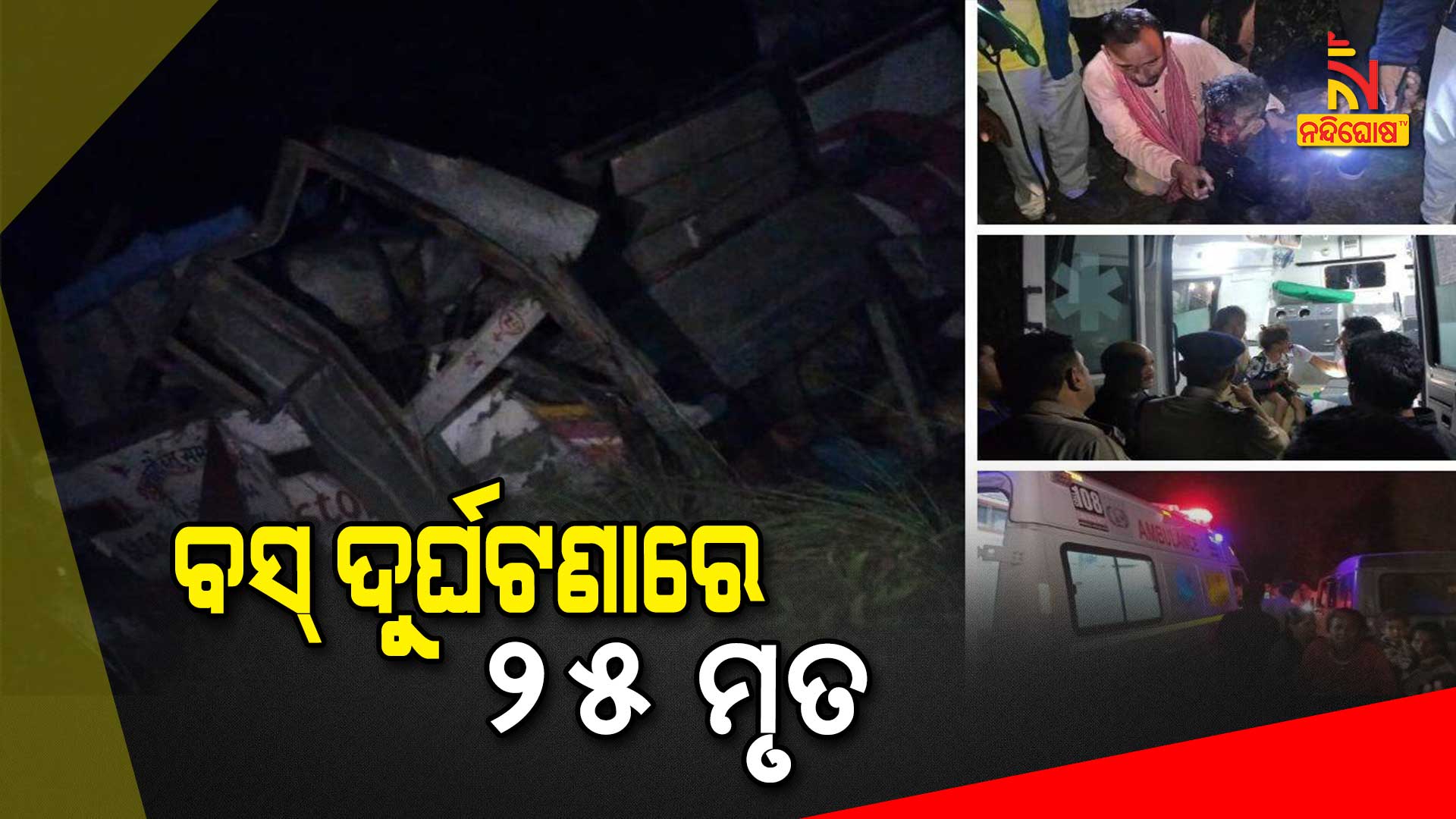 ଡେରାଡୁନ: ଗତକାଲି ବିଳମ୍ବିତ ସନ୍ଧ୍ୟାରେ ଉତ୍ତରାଖଣ୍ଡରେ ବସ୍ ଦୁର୍ଘଟଣାରେ ୨୫ ଜଣଙ୍କ ମୃତ୍ୟୁ ହୋଇଛି । ଖାଇକୁ ଖସି ବସ୍ ଟି ଗତକାଲି ଦୁର୍ଘଟଣାଗସ୍ତ ହୋଇଥିଲା । ବସରେ ଥିଲେ ୪୦ରୁ ୫୦ ଜଣ ଯାତ୍ରୀ । କାଲି ରାତି ତମାମ ଉଦ୍ଧାର କାର୍ଯ୍ୟ ଜାରି ରହିଥିଲା । ପୌରୀ ଗରଓ୍ବାଲ ଜିଲ୍ଲା ରିଖନିଖାଲରେ ଦୁର୍ଘଟଣା ଘଟିଥିଲା । ସେହିପରି ୨୧ ଜଣଙ୍କୁ ସୁରକ୍ଷିତ ଉଦ୍ଧାର କରିଛି SDRF ଟିମ୍ ଓ ପୋଲିସ । ୧୨ ଜଣ ଆହତ ହସ୍ପିଟାଲରେ ଭର୍ତ୍ତି ।