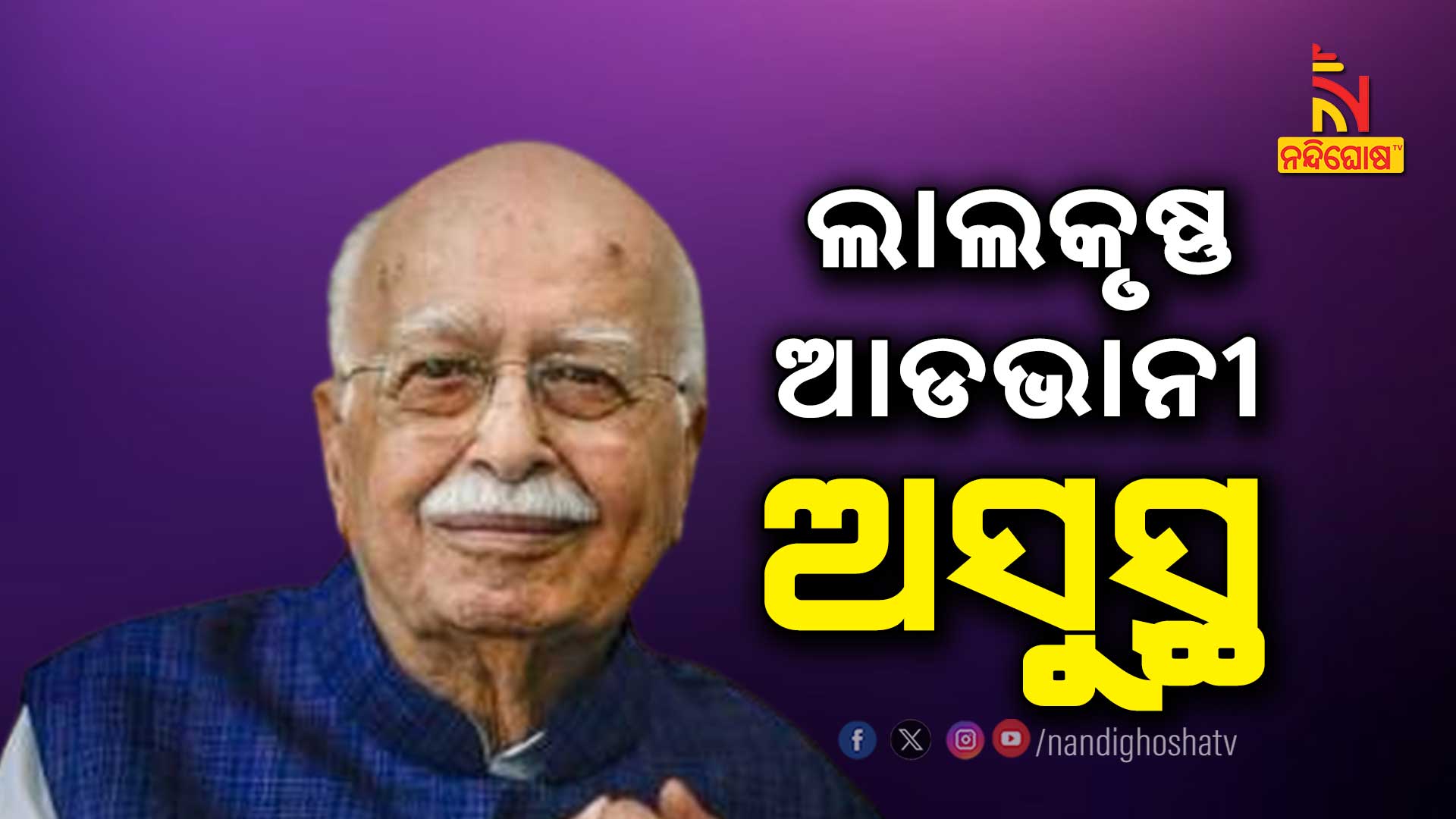 ନୂଆଦିଲ୍ଲୀ: ପୂର୍ବତନ ଉପପ୍ରଧାନମନ୍ତ୍ରୀ ତଥା ବରିଷ୍ଠ ବିଜେପି ନେତା ଲାଲକୃଷ୍ଣ ଆଡଭାନୀ ଦିଲ୍ଲୀ ଏମ୍ସରେ ଭର୍ତ୍ତି ହୋଇଛନ୍ତି । ସ୍ବାସ୍ଥ୍ଯବସ୍ଥା ବିଗିଡ଼ିବାରୁ ଗତକାଲି ତାଙ୍କୁ ଏମ୍ସରେ ଭର୍ତ୍ତି କରାଯାଇଛି । ହସ୍ପିଟାଲର ଜେରିଆଟିକ ବିଭାଗରେ ତାଙ୍କୁ ଅବଜର୍ଭବେସନରେ ରଖାଯାଇଛି । ସ୍ବାସ୍ଥ୍ଯ ବିଶେଷଜ୍ଞମାନେ ତାଙ୍କ ସ୍ବାସ୍ଥ୍ଯବସ୍ଥାକୁ ଅହରହ ଯାଞ୍ଚ କରୁଛନ୍ତି ।