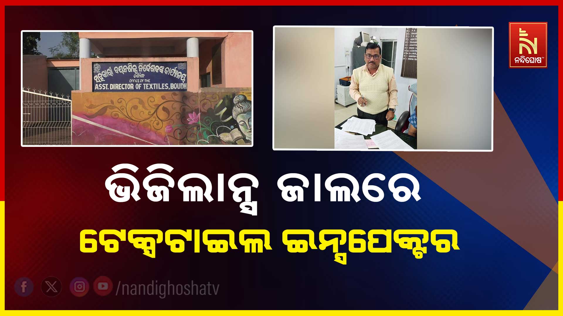 ବୌଦ୍ଧ : ଭିଜିଲାନ୍ସ ଜାଲରେ ଦୁଇ ଟେକ୍ସଟାଇଲ ଇନ୍ସପେକ୍ଟର । ୧୦ହଜାର ଟଙ୍କା ଲାଞ୍ଚ ନେଉଥିବା ବେଳେ ମାଡ଼ିବସିଲା ବୌଦ୍ଧ ଭିଜିଲାନ୍ସ ଟିମ । ବାଉଁସୁଣି ଥାନା ବୌଦ୍ୟନାଥପୁର ଗଜାନନ ତନ୍ତ ସମବାୟ ସମିତିର ୧୩ ଲକ୍ଷ ୩୧ ହାଜର ଟଙ୍କା ସୁପାରିସ୍ ନିମନ୍ତେ ସଂପାଦକ ପଞ୍ଚାନନ ମେହେରଙ୍କ ଠାରୁ ନେଉଥିଲେ ୧୦ହଜାର ଟଙ୍କା ଲାଞ୍ଚ । ଦୁଇ ଟେକ୍ସଟାଇଲ ଇନ୍ସପେକ୍ଟର ହେଲେ କୃଷ୍ଣଚନ୍ଦ୍ର ସାହୁ ଓ ଆଦିତ କୁମାର ଦାସ । ଦୁଇ ଜଣ ରହୁଥିବା ବୌଦ୍ଧ ସ୍ଥିତ ଭଡା ଘରେ ଜଗାନନ୍ଦ ବିହାର ଓ ରଥସାଇ ଭଡାଘରେ ଚଢ଼ାଉ ଜାରିରହିଛି ଭିଜିଲାନ୍ସ ଟିମ ।