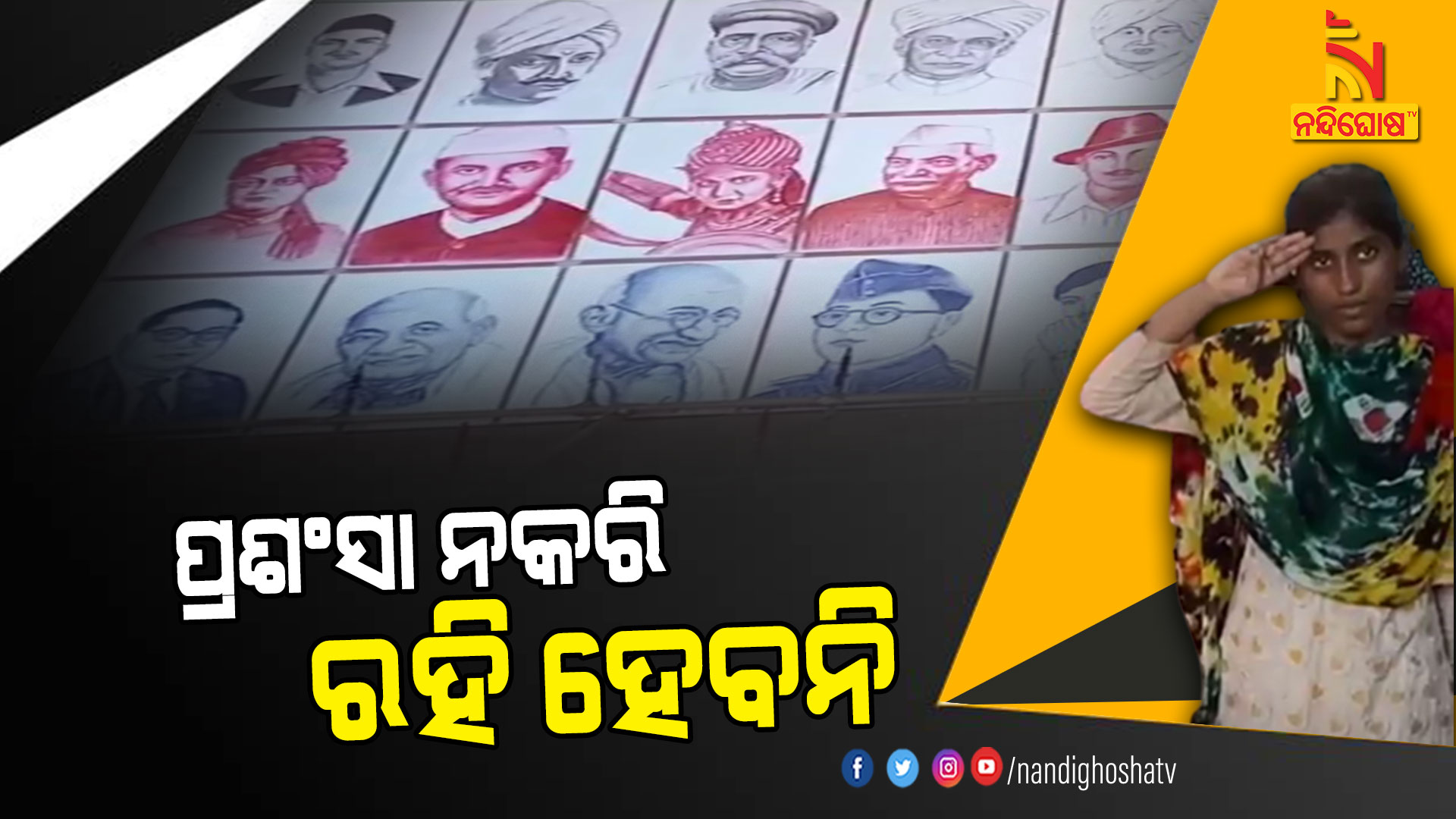 ନନ୍ଦିଘୋଷ ବ୍ୟୁରୋ: ଏ ଏମିତି ପ୍ରତିଭା । ଯାହା ବିସ୍ମିତ କରିଦେବ । କାରଣ ଅସମ୍ଭ ବି ଏଠି ସମ୍ଭବ ହେଉଛି । ଆଖି ଦେଖୁଛି, ତଥାପି ଆବିଶ୍ୱାସ ଲାଗୁଛି । କେମିତି ଯେ, ଗୋଟିଏ ଥରକେ ୧୫ଟି ଚିତ୍ର ? ଭିନ୍ନ ଭିନ୍ନ ପୁଣି ଅବିକଳ । ଆପଣଙ୍କୁ ଏ ପ୍ରତିଭା ଆଶ୍ଚର୍ଯ୍ୟ କରୁନି କି । ଗୋଟିଏ ହାତ ଚାଲୁଛି । କିନ୍ତୁ ଭିନ୍ନ ଭିନ୍ନ ମହାପୁରୁଷଙ୍କର ଅବିକଳ ଚିତ୍ରକୁ ନିଜ ପ୍ରତିଭାରେ ସେ ପରସି ଦେଇଛନ୍ତି । ସ୍ୱାମୀ ବିବେକାନନ୍ଦ, ସୁଭାଷ ବୋଷ, ଭଗତ ସିଂ ଠାରୁ ମହାତ୍ମା ଗାନ୍ଧୀ, ସର୍ଦାର ପଟେଲଙ୍କ ପର୍ଯ୍ୟନ୍ତ ।