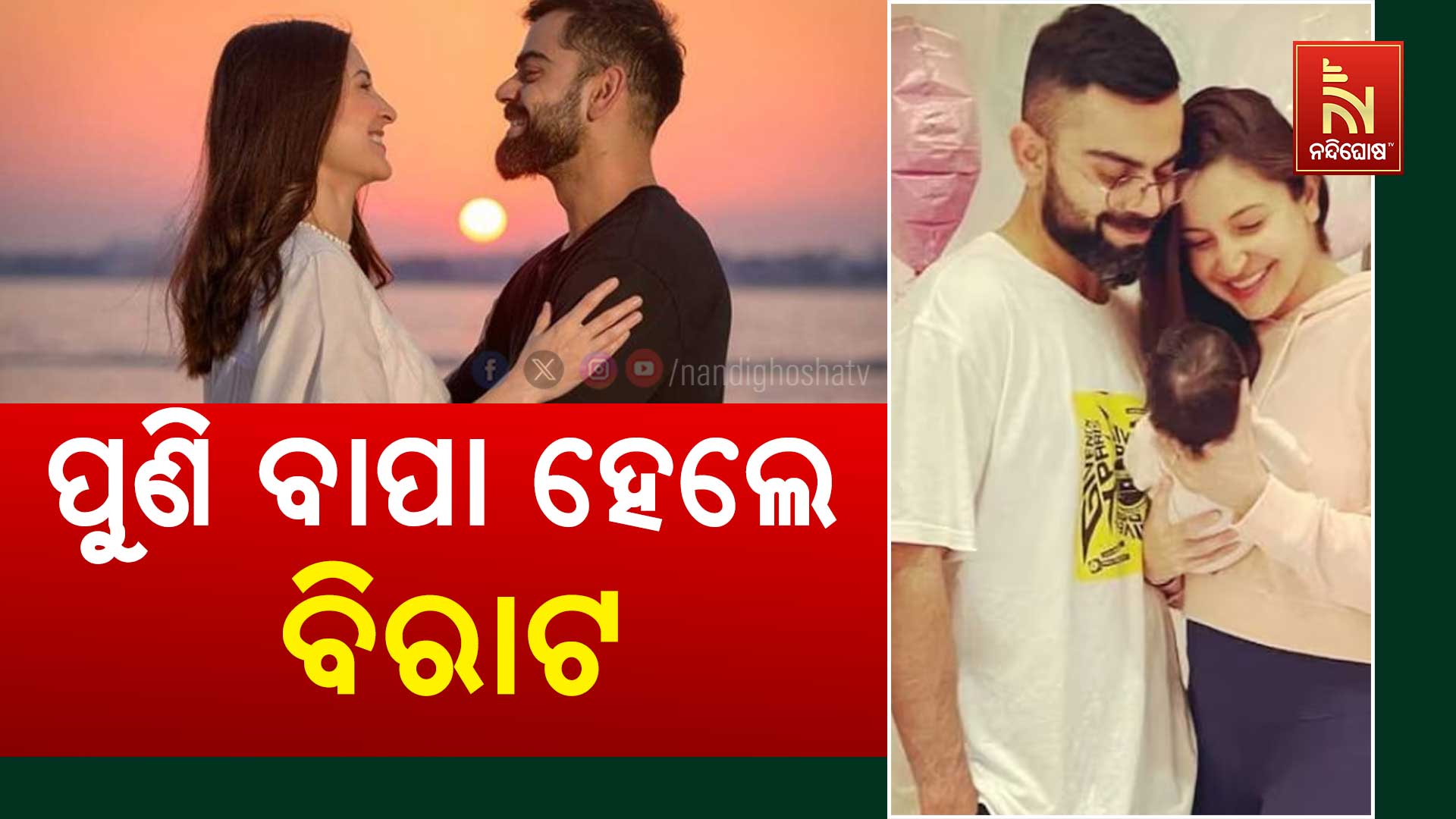 ନନ୍ଦିଘୋଷ ବ୍ୟୁରୋ: ପୁଣି ଥରେ ବାପା ହେଲେ ବିରାଟ କୋହଲି। ପତ୍ନୀ ଅନୁଷ୍କା ଶର୍ମା ଏକ ପୁତ୍ର ସନ୍ତାକୁ ଜନ୍ମ ଦେଇଛନ୍ତି । ଗତ ୧୫ ତାରିଖରେ ଉଭୟଙ୍କ ପୁତ୍ର ସନ୍ତାନ ଜନ୍ମ ହୋଇଥିବା ନେଇ ବିରାଟ ଇନଷ୍ଟାରେ ସୂଚନା ଦେଇଛନ୍ତି । ତାଙ୍କ ପୁଅର ନାଁ ରହିଛି ଅକାୟ । ଏହି ଖବର ଆସିବା ପରେ କ୍ରିକେଟ ଷ୍ଟାର ବିରାଟ ଏବଂ ଅଭିନେତ୍ରୀ ଅନୁଷ୍କାଙ୍କ ଲାଗି ଶୁଭେଚ୍ଛାର ସୁଅ ଛୁଟୁଛି। ଅନୁଷ୍କା ଗର୍ଭବତୀ ଥିବା ଖବର ଦକ୍ଷିଣ ଆଫ୍ରିକାର କ୍ରିକେଟର ଏବି ଡିଭିଲିୟର ଏକ ସାକ୍ଷାତକାରରେ ଖୁଲାସା କରିଥିଲେ । ପୂର୍ବରୁ ବିରାଟ ଓ ଅନୁଷ୍କାଙ୍କର ଏକ କନ୍ଯା ସନ୍ତାନ ରହିଛି । ତାଙ୍କ ଝିଅର ନାଁ ହେଉଛି ଭାମିକା । ବିରାଟ ଓ ଅନୁଷ୍କା ୨୦୧୭ରେ ବିବାହ କରିଥିଲେ ।
