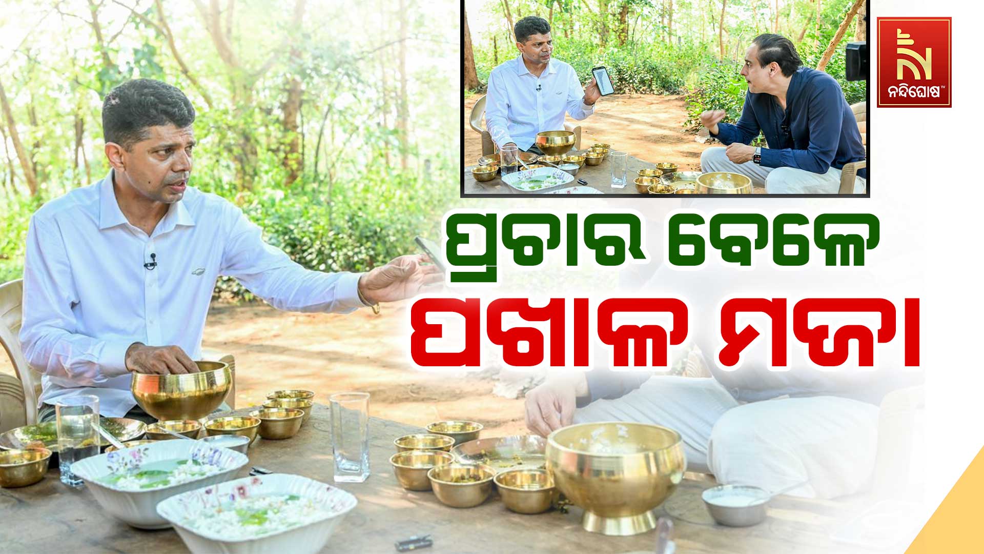 ଭୁବନେଶ୍ୱର: ପ୍ରଚଣ୍ଡ ଖରା ସହ ଘମାଘୋଟ ନିର୍ବାଚନ ପ୍ରଚାର ର ଉଷ୍ଣତା ମଧ୍ୟରେ ପଖାଳ ର ମଜ୍ଜା ନେଇଛନ୍ତି 5T ଅଧକ୍ଷ କାର୍ତ୍ତିକ ପାଣ୍ଡିଆନ । ସାଥିରେ ଥିଲେ India Today TV ର ବରିଷ୍ଠ ସାମ୍ବାଦିକ ରାହୁଲ କନୱାଲ ।