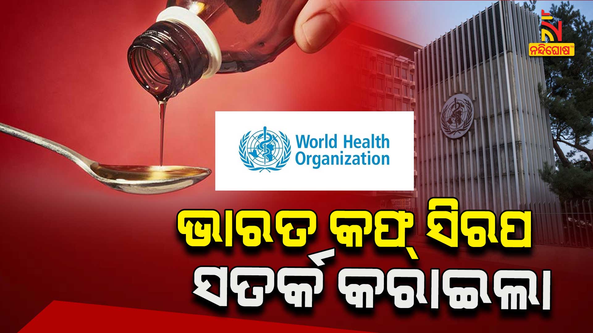 ନୂଆଦିଲ୍ଲୀ: ଥଣ୍ତା, ଜ୍ୱର ଓ କଫ ପାଇଁ ହରିୟାଣାରେ ମେଡେନ ଫାର୍ମାସ୍ୟୁଟିକାଲ ତରଫରୁ ପ୍ରସ୍ତୁତ ୪ଟି କଫ୍ ସିରପ ବ୍ୟବହାର ନ କରିବାକୁ ସତର୍କ କରାଇଲା WHO । ଏହି ସିରପ ପିଇ ଗାମ୍ୱିଆରେ ୬୬ ଶିଶୁଙ୍କ ମୃତ୍ୟୁ ପରେ ଭାରତ ସମେତ ସବୁ ଦେଶକୁ ସତର୍କତା ଜାରି କରିଛି WHO । ଲ୍ୟାବରାଟୋରୀରେ ଏହି ସିରପ ପରୀକ୍ଷା ପରେ ଆବଶ୍ୟକତାଠାରୁ ଅଧିକ ପରିମାଣର ଆଲକୋହଲ ମାତ୍ରା ଥିବା ସ୍ପଷ୍ଟ ହୋଇଛି । ଏହା କିଡନୀକୁ ପ୍ରଭାବିତ କରୁଛି ଓ ବ୍ୟବହାର ନ କରିବାକୁ ଆଡଭାଇଜରି ଜାରି କରିଛି WHO ।
