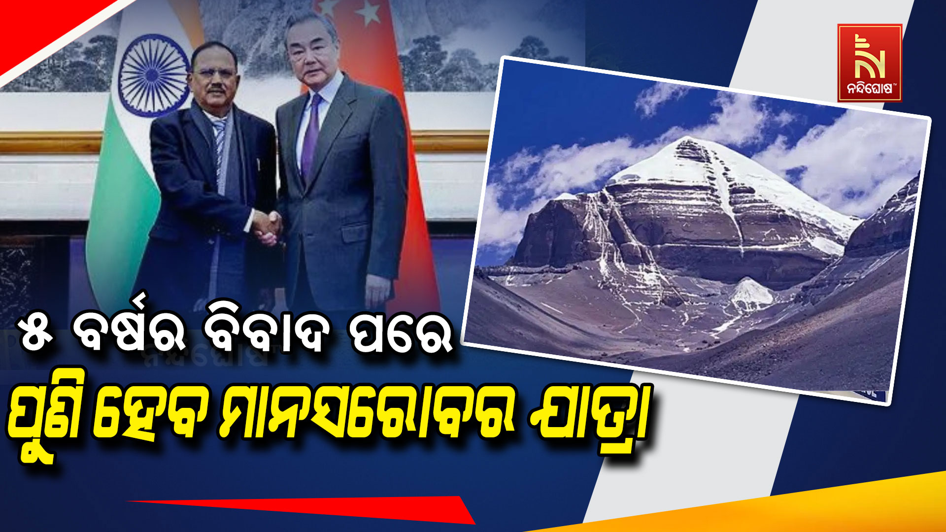 ନନ୍ଦିଘୋଷ ବ୍ୟୁରୋ: ୨୦୧୯ ରୁ ବନ୍ଦ ହୋଇଥିବା ମାନସରୋବର ଯାତ୍ରା ପାଇଁ ଭାରତ ଏବଂ ଚୀନ୍ ଉଭୟ ଦେଶ ସହମତି ଦେଇଛନ୍ତି । ପାଞ୍ଚ ବର୍ଷ ପାରେ ବିଭିନ୍ନ ସମସ୍ୟାକୁ ନେଇ ଦୁଇ ଦେଶ ଭିତରେ ଏକ ବୖଠକ ହୋଇଥିଲା ଯେଉଁଥିରେ ୬ଟି ମୁଦ୍ଦାକୁ ନେଇ ଉଭୟ ଦେଶ ସହମତି ଦେଇଛନ୍ତି । ଡ଼ିସେମ୍ବର ୨୦୧୯ ପରଠାରୁ ପ୍ରଥମ ଥର ପାଇଁ ଲଦାଖରେ ଚାରି ବର୍ଷର ବିବାଦ ପରେ ସମ୍ପର୍କର ପନରୁଦ୍ଧାରକୁ ଦୃଷ୍ଟି ରେ ରଖି ସୀମା ପ୍ରସଙ୍ଗରେ ଗଠିତ ଏହି ସମାସ୍ୟା କୁ ଶେଷ କରିବା ଲଗି ଏକ ଗୁରୁତ୍ବପୂର୍ଣ୍ଣ ମିଟିଙ୍ଗ ହୋଇଛି । ଭାରତ ଓ ଚିନ ମଧ୍ୟରେ ହୋଇଥିବା ଏହି ଚୁକ୍ତିନାମାରେ ଭାରତୀୟ ପରାମଶର୍ଦାତା ଅଜିତ ଡ଼ୋଭାଲ ଏବଂ ଚୀନ ପକ୍ଷରୁ ଚୀନର ବୈଦେଶିକ ମନ୍ତ୍ରୀ ଓ୍ବାଙ୍ଗ ୟି ଉପସ୍ଥିତ ଥିଲେ । ସୀମା ନଦୀ ଏବଂ ଉଭୟ ଦେଶର ବାଣିଜ୍ୟରେ ଉନ୍ନତି ଆାଣିବା ପ୍ରସଙ୍ଗରେ ସହମତ ଦେଇଛନ୍ତି । ଦ୍ୱିପାକ୍ଷିକ ସମ୍ପର୍କର ଉନ୍ନତି ପାଇଁ ସୀମା ଅଞ୍ଚଳରେ ଶାନ୍ତି ବଜାୟ ରଖିବାକୁ ଉଭୟ ସ୍ୱତନ୍ତ୍ର ପ୍ରତିନିଧୀ ବର୍ଣ୍ଣନା କରିଛନ୍ତି।ଭାରତ ଏବଂ ଚୀନ୍ର ସ୍ୱତନ୍ତ୍ର ପ୍ରତିନିଧୀମାନେ ସୀମା ବିବାଦ ଉପରେ ଆଲୋଚନା କରି କୌଳାଶ ମାନସରୋବର ଯାତ୍ରା ଆରମ୍ଭ କରିବାକୁ ରାଜି ହୋଇଥିଲେ। ଏହି ବାର୍ତ୍ତାଳାପ ପରେ ଭାରତର ଭକ୍ତମାନେ ଏକ ବଡ଼ ଖବର ପାଇଛନ୍ତି। ଏହାପୂର୍ବରୁ ବ୍ରାଜିଲର ରିଓ ଡି ଜେନେରେୋରେ ଅନୁଷ୍ଠିତ ଜି -୨୦ ଶିଖର ସମ୍ମିଳନୀରେ ବୈଦେଶିକ ବ୍ୟାପାର ମନ୍ତ୍ରୀ ଏସ ଜୟଶଙ୍କର ଚୀନ୍ ପ୍ରତିପକ୍ଷ ୱାଙ୍ଗ ୟିଙ୍କୁ ଭେଟିଥିଲେ। ଯେଉଁଥିରେ ମାନସରୋବର ଯାତ୍ରା ଆରମ୍ଭ କରିବା ଏବଂ ଭାରତ ଏବଂ ଚୀନ୍ ମଧ୍ୟରେ ସିଧାସଳଖ ବିମାନ ଉଡ଼ାଣ ଆରମ୍ଭ କରିବା ଭଳି ପ୍ରସଙ୍ଗ ଉପରେ ଆଲୋଚନା କରାଯାଇଥିଲା। ଗତ ପାଞ୍ଚ ବର୍ଷ ଧରି ଏହି ମାନସରୋବର ଯାତ୍ରା ବନ୍ଦ ରହିଥିଲା ।