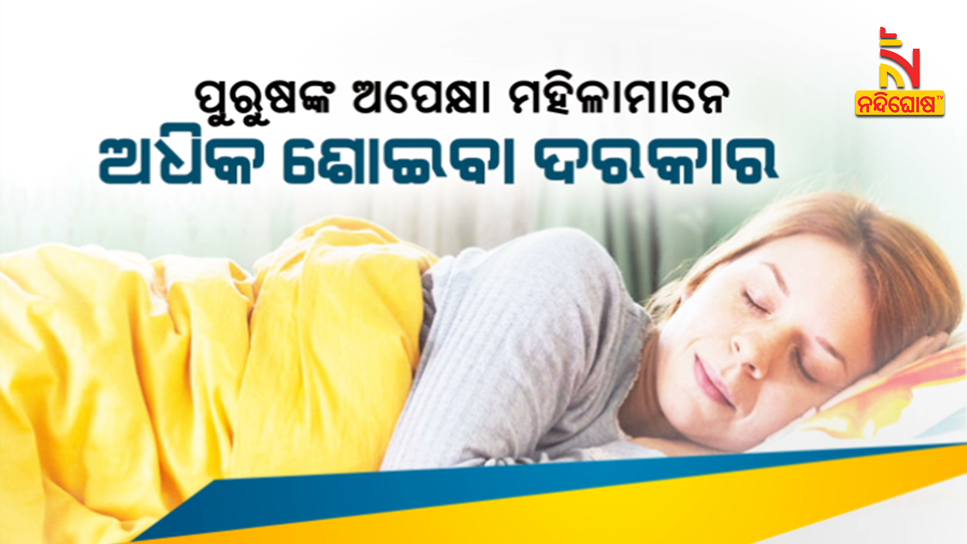 ନନ୍ଦିଘୋଷ ବ୍ୟୁରୋ: ବ୍ୟସ୍ତବହୁଳ ଜୀବନରେ ସବୁ ବର୍ଗର ଲୋକ ନିଦ୍ରାହୀନତା ସମସ୍ୟାର ଶିକାର ହେଉଛନ୍ତି। ଅର୍ଥାତ୍ ସୁନିଦ୍ରାର ଅଭାବ। ସାଧାରଣତଃ ଷ୍ଟ୍ରେସ୍, ଶାରୀରିକ ଅସୁସ୍ଥତା କିମ୍ବା ମେଡିସିନ ଖାଇଥିଲେ ସଠିକ୍ ନିଦ୍ରା ହୁଏ ନାହିଁ । ତେବେ ଭଲନିଦ କେବଳ ଶରୀରକୁ ସୁସ୍ଥ ରଖେ ତା ନୁହେଁ । ବରଂ ମାନସିକ ସ୍ତରକୁ ମଧ୍ୟ ସୁସ୍ଥ ରଖିବାରେ ସହାୟକ ହୁଏ । ଜଣେ ସୁସ୍ଥ ରହିବା ପାଇଁ ପ୍ରତ୍ୟହ ୭-୮ ଘଣ୍ଟା ଶୋଇବା ଜରୁରୀ । କିନ୍ତୁ ପୁରୁଷଙ୍କ ତୁଳନାରେ ମହିଳା ମାନେ ଅଧିକ ବିଶ୍ରାମ ନେବା ଜରୁରୀ ।