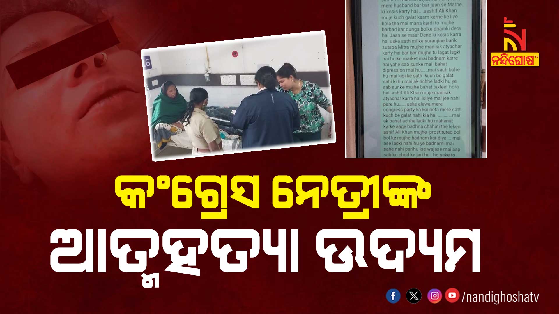 ସମ୍ବଲପୁର: ସମ୍ବଲପୁରରେ ଫିନାଇଲ ପିଇ କଂଗ୍ରେସ ନେତ୍ରୀଙ୍କ ଆତ୍ମହତ୍ୟା ଉଦ୍ୟମ ଅଭିଯୋଗ। କଂଗ୍ରେସ ନେତ୍ରୀ ନିଖତ ପରବିନ ଆଜି ସକାଳେ ଫିନାଇଲ୍ ପିଇ ଆତ୍ମହତ୍ୟା ଉଦ୍ୟମ କରିଥିବା ଅଭିଯୋଗ ହୋଇଛି। ଏବେ ସେ ମେଡିକାଲରେ ଚିକିତ୍ସାଧୀନ ଅଛନ୍ତି। ନିଜ ସ୍ୱାମୀ ଏବଂ ରେଢ଼ାଖୋଲର ପୂର୍ବତନ କଂଗ୍ରେସ ବିଧାୟକ ପ୍ରାର୍ଥୀ ଆସବ ଅଲ୍ଲୀ ଖାନ୍ ତାଙ୍କୁ ମାନସିକ ନିର୍ଯାତନା ଦେଉଥିବା ସେ ଅଭିଯୋଗ କରିଛନ୍ତି। ଆସବ ଅଲ୍ଲୀ ଖାନଙ୍କ ବିରୋଧରେ ଆଣିଛନ୍ତି ଗୁରୁତର ଅଭିଯୋଗ।