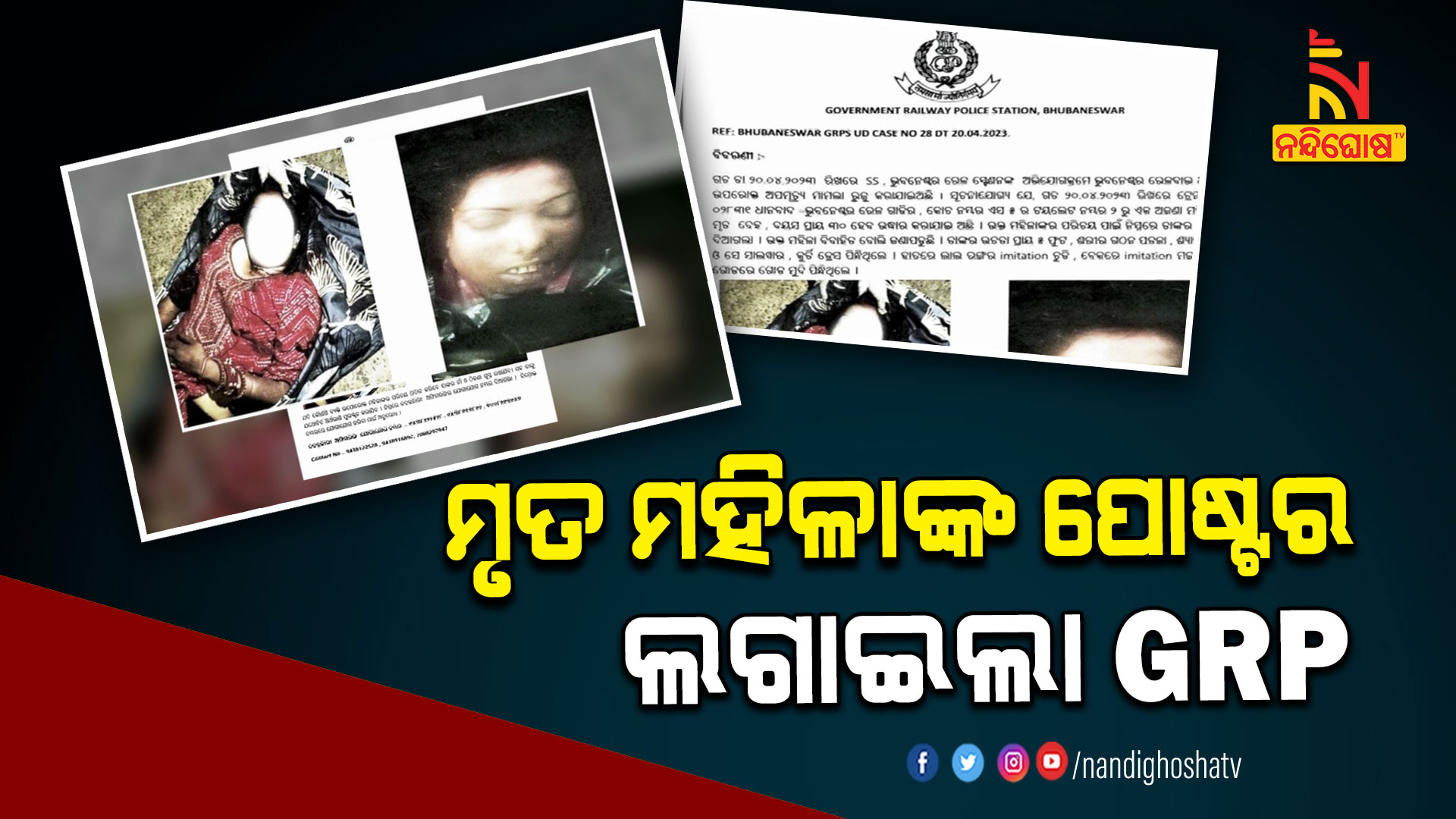 ଭୁବନେଶ୍ୱର: ଭୁବନେଶ୍ୱର ସତ୍ୟନଗର କୋଚିଂ ୟାର୍ଡରେ ଟ୍ରେନ ଶୌଚାଳୟରୁ ମୃତଦେହ ମିଳିବା ଘଟଣା । ମୃତ ମହିଳାଙ୍କ ପୋଷ୍ଟର ଲଗାଇଲା GRP । ଭୁବନେଶ୍ୱର ରେଳ ଷ୍ଟେସନ, ରାଜ୍ୟ ବାହାରର ଷ୍ଟେସନ ଓ ଜନଗହଳି ପୂର୍ଣ୍ଣ ଜାଗାରେ GRP ପକ୍ଷରୁ ପୋଷ୍ଟର ଲଗାଯାଇଛି। ମୃତ ମହିଳାଙ୍କ ବିଷୟରେ ଯେଉଁ ବ୍ୟକ୍ତି ଖବର ଦେବେ ତାଙ୍କୁ ପୁରସ୍କାର ଦିଆଯିବ। ତଥ୍ୟ ଦେଇଥିବା ବ୍ୟକ୍ତିଙ୍କ ପରିଚୟ ଗୋପନ ରଖାଯିବ ବୋଲି ପୋଲିସ କହିଛି ।