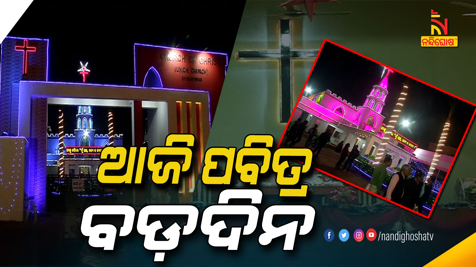 ନନ୍ଦିଘୋଷ ବ୍ୟୁରୋ: ଆଜି ପବିତ୍ର ବଡ଼ଦିନ । ଉତ୍ସବ ପାଳୁଛନ୍ତି ଖ୍ରୀଷ୍ଟଧର୍ମାବଲମ୍ବୀ । ଉତ୍ସବମୁଖର ହୋଇଛି ସାରା ବିଶ୍ବ । ମଧ୍ୟରାତ୍ରିରେ ଧରାବତରଣ କରିଛନ୍ତି ପ୍ରଭୁ ଯୀଶୁ । ସମବେତ ପ୍ରାର୍ଥନା କରି ପ୍ରଭୁଙ୍କ ଧରାବତରଣକୁ ପାଳନ କରିଛନ୍ତି ଶ୍ରଦ୍ଧାଳୁ । ବିଭିନ୍ନ ଚର୍ଚ୍ଚରେ କରାଯାଇଛି ବ୍ୟାପକ ବ୍ୟବସ୍ଥା । ବଡ଼ଦିନ ପାଇଁ ଚର୍ଚ୍ଚଗୁଡ଼ିକୁ ସୁନ୍ଦର ଆଲୋକମାଳାରେ ସଜାଯାଇଛି । ରାଜଧାନୀ ଭୁବନେଶ୍ବର ସମେତ ସାରା ରାଜ୍ୟର ଚର୍ଚ୍ଚରେ ଲାଗିଛି ଗହଳି ।