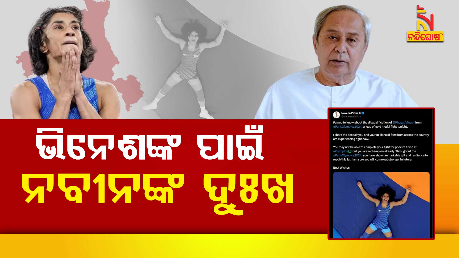 ଭୁବନେଶ୍ୱର : ପ୍ୟାରିସ୍ ଅଲିମ୍ପକ୍ସରେ ଭିନେଶ ଫୋଗାଟଙ୍କୁ ଅଯୋଗ୍ୟ ଘୋଷଣା ପ୍ରସଙ୍ଗରେ ଗଭୀର ଦୁଃଖ ପ୍ରକାଶ କରିଛନ୍ତି ପୂର୍ବତନ ମୁଖ୍ୟମନ୍ତ୍ରୀ ତଥା ବିଜେଡି ସୁପ୍ରିମୋ ନବୀନ ପଟ୍ଟନାୟକ । ଭିନେଶଙ୍କୁ ଅଲିମ୍ପିକ୍ସରୁ ଅଯୋଗ୍ୟ ପରେ ଏହାକୁ ନେଇ କୋଟି କୋଟି ପ୍ରଶଂସକ ଅସନ୍ତୋଷ ପ୍ରକାଶ କରିଛନ୍ତି। ଦେଶବାସୀଙ୍କ ଦୁଃଖ ସହ ସେ ମଧ୍ୟ ସମ ପରିମାଣରେ ଦୁଃଖୀ ଅଛନ୍ତି।
